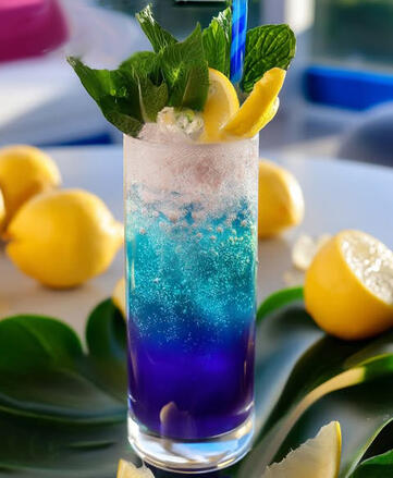 The Frozen Shiva is a delectable slush with a twist! We spike it to perfection with coconut rum and blue curacao among other things. Served with a slice of lemon and sugared rim for extra sweetness.